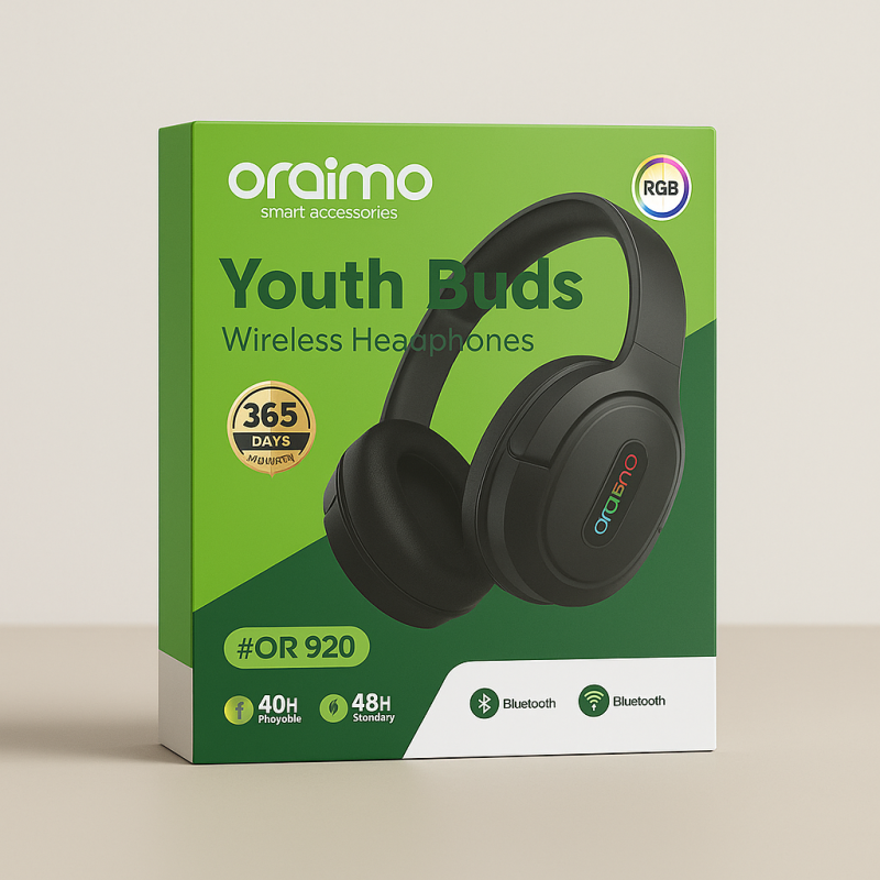 Oraimo OR 920 Youth Buds RGB Wireless Headphone এমন ব্যবহারকারীদের জন্য যারা মিউজিকের সাথে স্টাইলও উপভোগ করতে চান। ডিপ বেস সহ HD সাউন্ড কোয়ালিটি, স্টাইলিশ RGB লাইটিং এবং দীর্ঘ ব্যাটারি ব্যাকআপ – সবকিছু মিলিয়ে এটি গেমিং, মিউজিক শোনা এবং দৈনন্দিন ব্যবহারের জন্য আদর্শ।