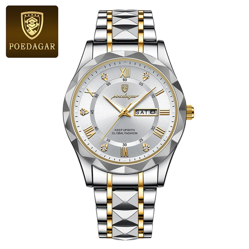 Poedagar PO615 Men Luxury Stainless Steel Luminous Quartz Wristwatch (White)